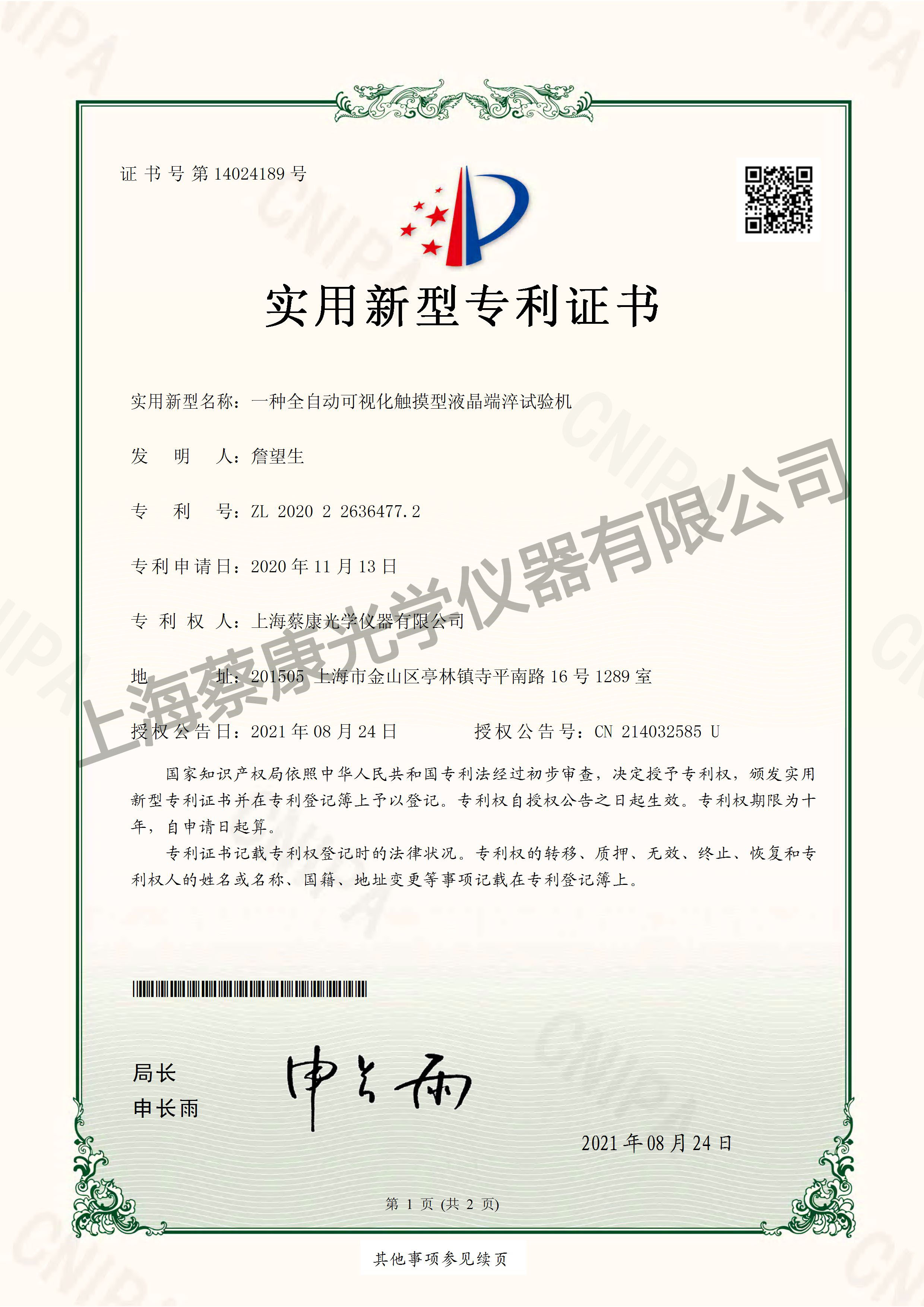 1、CK-IV系列采用液晶觸摸屏控制操作,并有申請(qǐng)可視化液晶端淬機(jī)相關(guān)專利,(專利號(hào):ZL2020 2 2636477.2)。