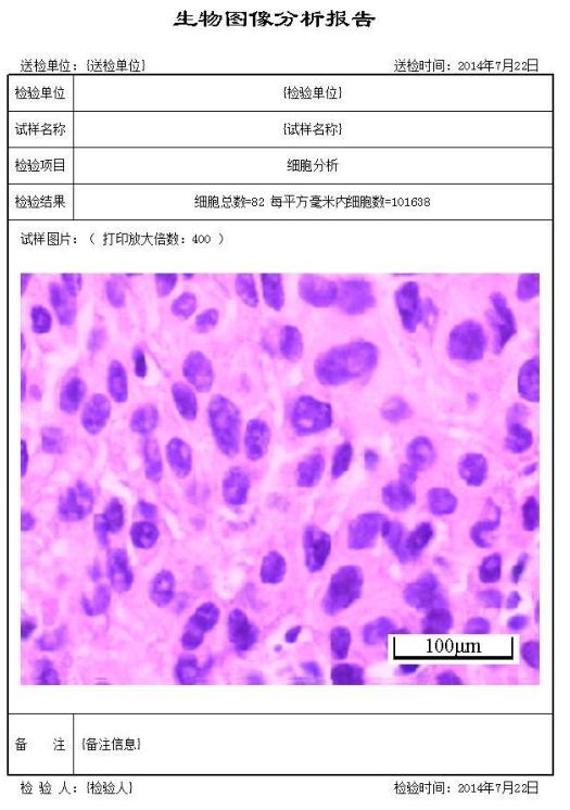 1、細(xì)胞分析:對(duì)深色或淺色細(xì)胞自動(dòng)統(tǒng)計(jì)細(xì)胞總數(shù),每平方毫米內(nèi)細(xì)胞數(shù),單個(gè)細(xì)胞的直徑及面積。