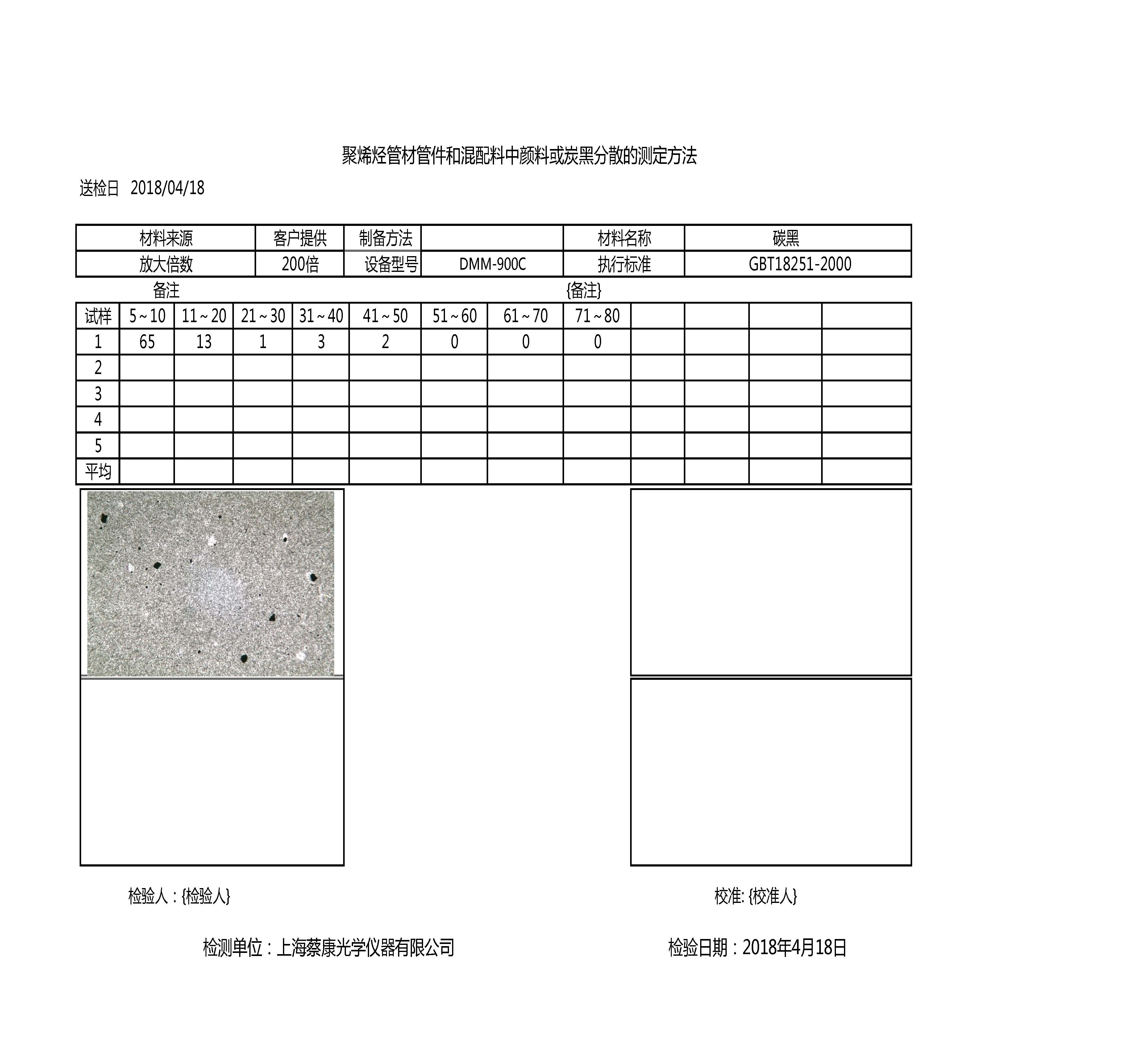 1、聚烯烴管材、管件和混配料中顏料或炭黑分散的檢定顯微圖像分析